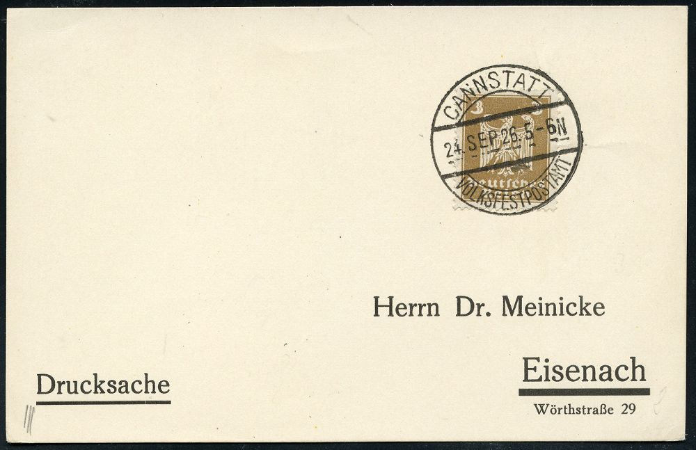 3170 | 18 € | 7000 Stuttgart Sonder- & Hand-Werbestempel : CANNSTATT/ VOLKSFESTPOSTAMT 1928 (24.9.) SSt klar auf Inl.-Drs.-Karte (Bo.8 , III.Verwendung) | ![]() | |