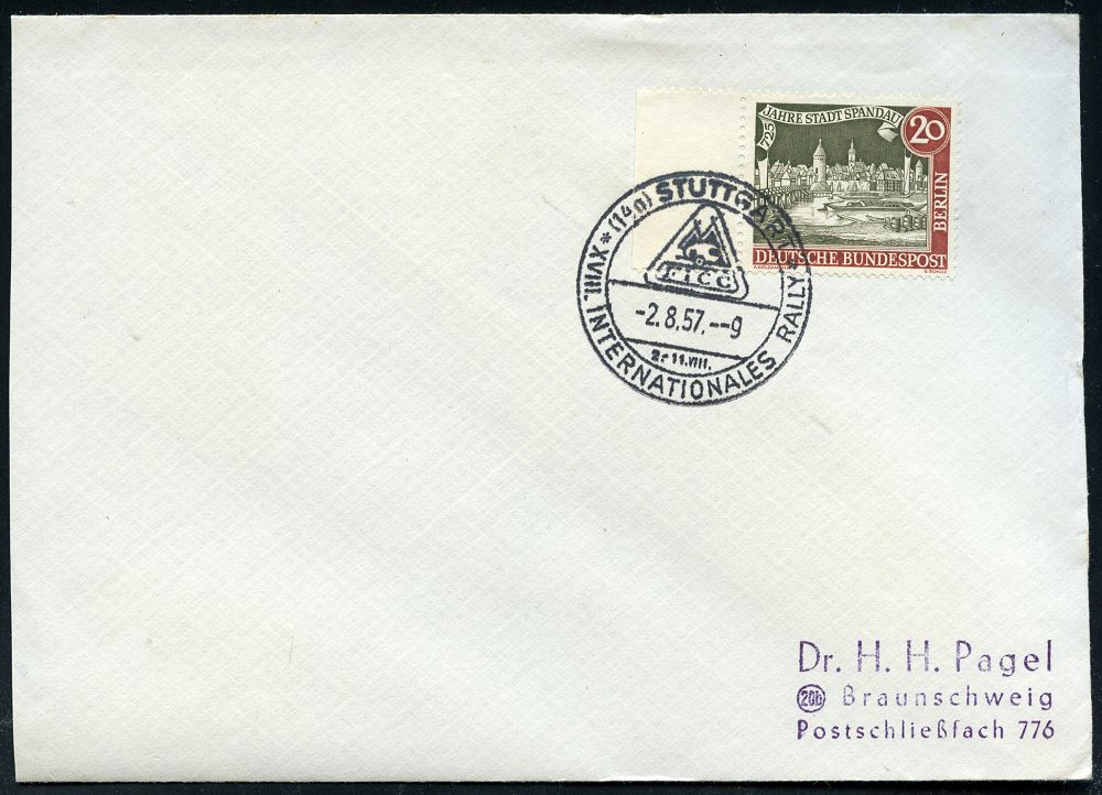 3215 | 14 € | 7000 Stuttgart Sonder- & Hand-Werbestempel : (14a) STUTTGART/ FICC/ XVIII.INTERNAT.RALLYE 1957 (2.8.) SSt = F I C C - Logo (= Camping-Rallye) klar gest. Inl.-Bf. (Bo.231) | ![]() | |