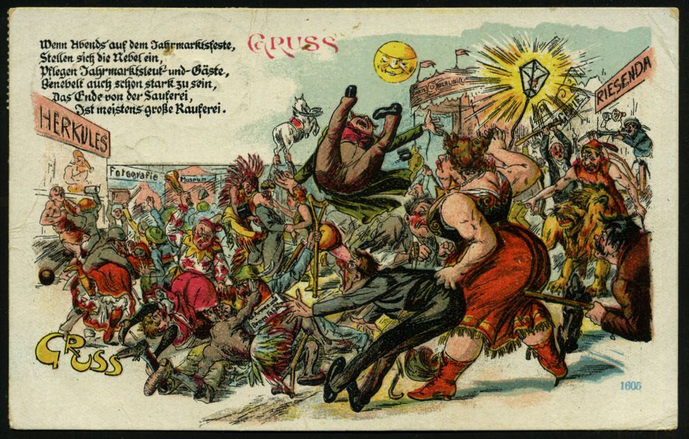 3168 | 40 € | 7000 Stuttgart Sonder- & Hand-Werbestempel : Stuttgart-Bad Cannstatt 1907 (30.7.) seltener SSt: CANNSTATT/ V O L K S - F E S T P L A T Z , 2x klar gest. Color-Litho-Ak.: GRUSS.. = Herkules und Riesendame (Spott-Ak.) Bedarf (Bo.3 , IX. Verwendung) | ![]() ![]() | |