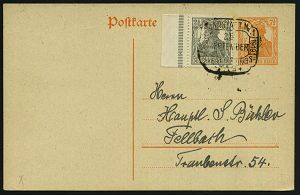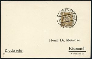 3169 | 18 € | 7000 Stuttgart Sonder- & Hand-Werbestempel : (STUTTGART)-CANNSTATT Nr.1/ 1819-/ 1919/ W.VERFASSUNGS=/ TAG 1919 (25.9.) seltener SSt auf Inl.-P Germania ohne Txt. (Bo.5 , nur am 25.9. verwendet) | ![]() | |