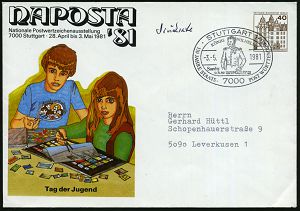 3228 | 12 € | 7000 Stuttgart Sonder- & Hand-Werbestempel : 7000 STUTTGART 1/ KÖNIG WILHELM I./ Sonderrschau.. 1981 (3.5.) SSt = Wilhelm I. von (in Uniform) passende PU 40 Pf. Bauwerke: NAPOSTA ´81 (Mi.PU 71/12) Inl.-Bf. (Bo.729) | ![]() | |