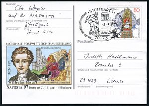 3233 | 8 € | 7000 Stuttgart Sonder- & Hand-Werbestempel : 70173 STUTTGART 1/ Inline Skating.. 1997 (8.5.) NAPOSTA-SSt = Inline-Skater auf Sonder-P 80 Pf. NAPOSTA: W. Hauff (Der Kleine Muck) Bedarf (Mi.PSo.46) | ![]() | |