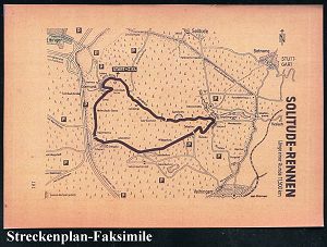 3182 | 30 € | 7000 Stuttgart Sonder- & Hand-Werbestempel : STUTTGART-/ GLEMSECK/ Int.Solitude-Rennen 1937 (23.5.) SSt (Rennmotorrad) auf passender PP 1 Pf. + 5 Pf.: JNTERNAT. SOLITUDE-RENNEN 1937 (Start) klar gest. Inl.-Karte (Mi.PP145/C 2) + Faksimile der Rennstrecke (Bo.61) | ![]() ![]() | |