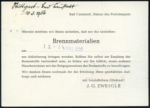 3178 | 15 € | 7000 Stuttgart Sonder- & Hand-Werbestempel : STUTTGART 1/ SDA/ WERBE-/ AUSSTELLUNG/ ZUM TAG DER/ BRIEFMARKE 1937 (Jan.) SSt auf EF 8 + 4 Pf. WHW (Mi.638 EF) auf s/w.-Foto-Ak.: Cannstatt, Bedarf (Bo.55) | ![]() ![]() | |