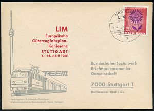 3224 | 15 € | 7000 Stuttgart Sonder- & Hand-Werbestempel : 7 STUTTGART/ LIM/ Europ.Güterzug-/ fahrplankonferenz 1965 (6.4.) SSt = Hauptbahnhof (u. TV-Turm) klar gest. LIM-SU. (Bo.341) | ![]() | |