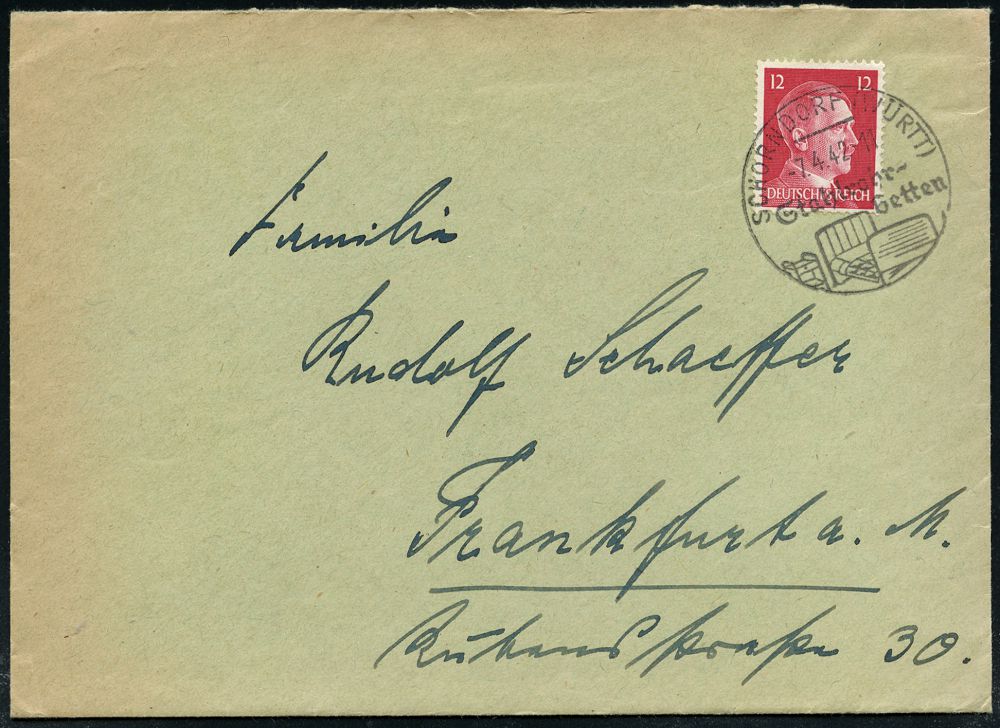 3864 | 15 € | POSTLEITRAUM 7000 (OHNE STUTTGART) : SCHORNDORF(WÜRTT)/ Stahlrohr-/ Betten 1942 (7.4.) HWSt in Antiqua (Stahlrohrbett) klar auf Inl.-Bf. mit Inhalt! (Bo.7 Letztjahr!) | ![]() ![]() | |