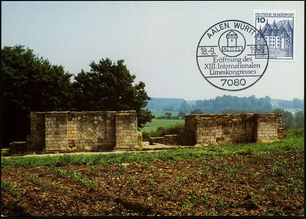 3757 | 12 € | POSTLEITRAUM 7000 (OHNE STUTTGART) : 7080 AALEN,WÜRTT 1/ ..XIII.Internat./ Limeskongresses 1983 (18.9.) SSt = Logo Limes-Wachturm vs. auf passender Color-Ak.: Limesmuseum Aalen (o.A.) | ![]() | |