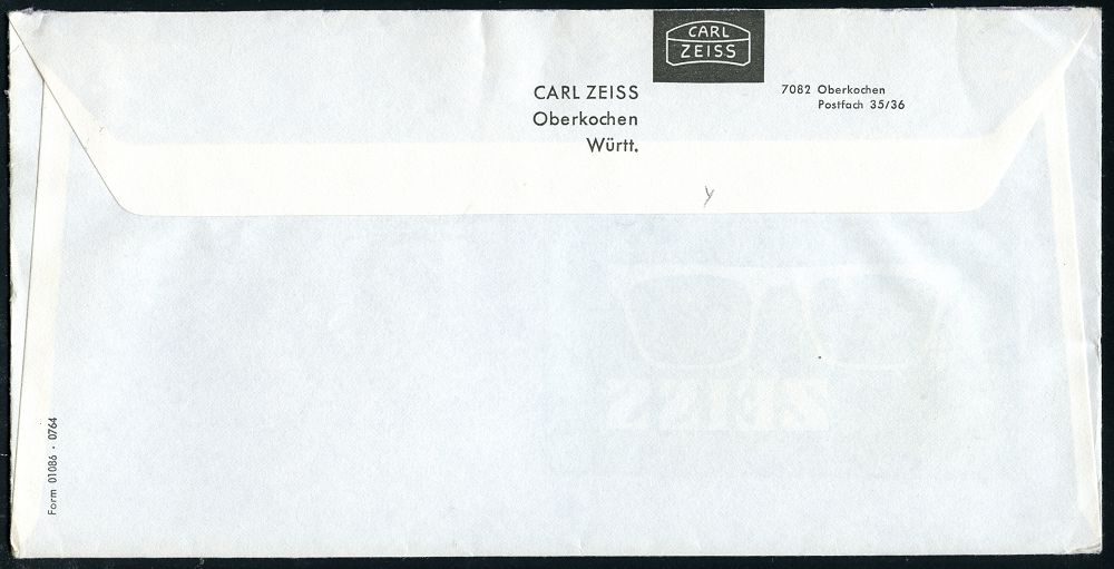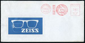 3844 | 14 € | POSTLEITRAUM 7000 (OHNE STUTTGART) : 7082 OBERKOCHEN/ ZEISS 1964 (22.10.) AFS Francotyp = Mikroskop , rs. Abs.-Vordruck: CARL ZEISS.. (Logo) klar gest. Reklame-Bf.: Brille (Dü.E-23CO) | ![]() ![]() | |