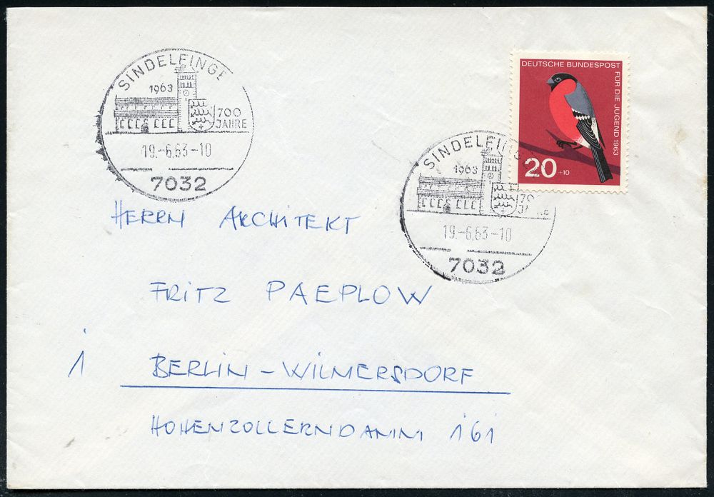 3889 | 10 € | POSTLEITRAUM 7000 (OHNE STUTTGART) : 7032 SINDELFINGEN/ 1963/ 700/ JAHRE 1963 (19.6.) SSt (Rathaus) auf Fern-Bf. (Bo.3, nur 1962-63 verwendet) | ![]() | |