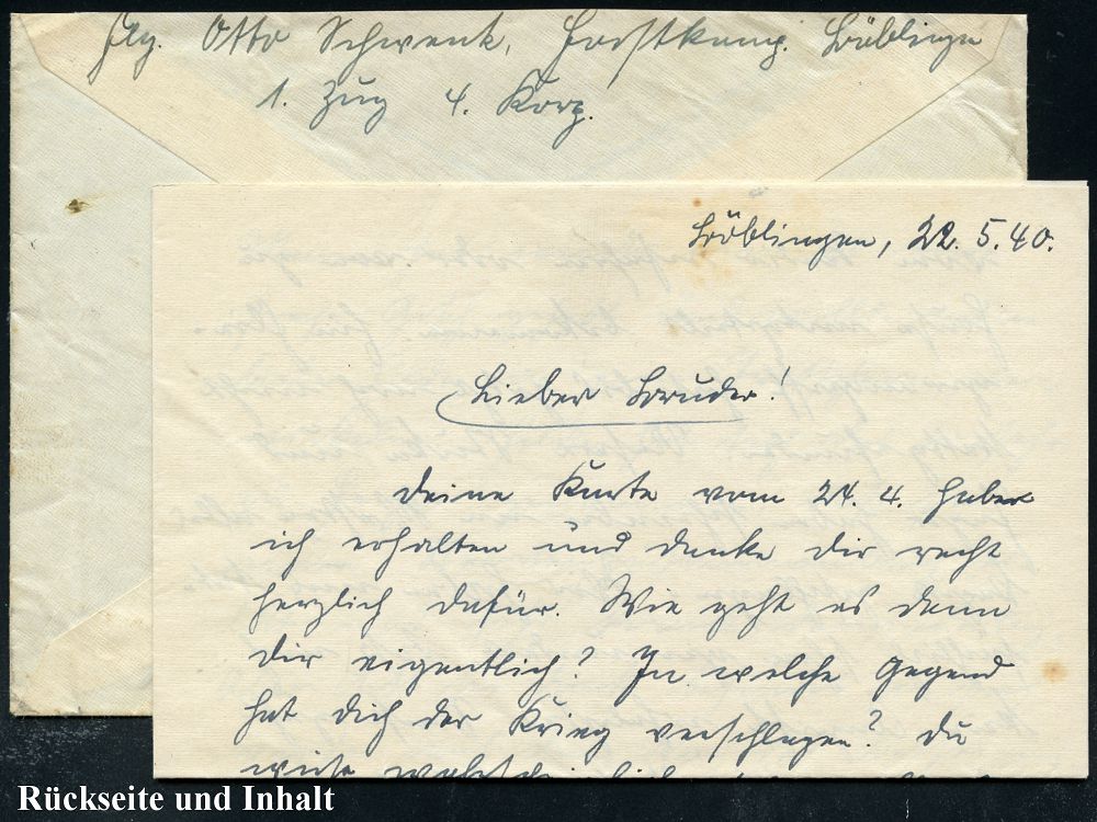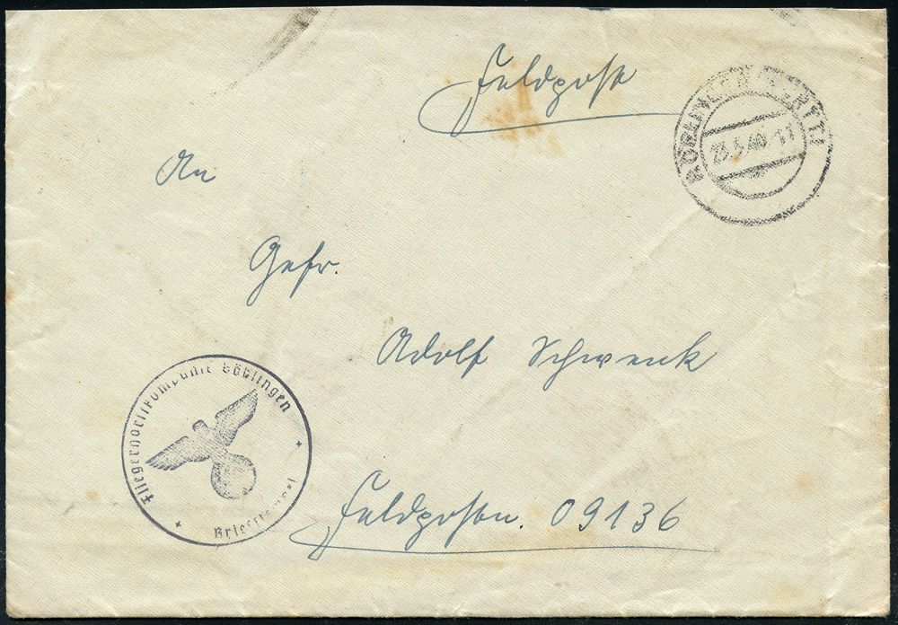 3763 | 15 € | POSTLEITRAUM 7000 (OHNE STUTTGART) : BÖBLINGEN (WÜRTT) 1940 (23.5.) 2K-Steg + viol. 1K-HdN: Fliegerhorstkommandantur Böblingen (teils gering undeutl.) + rs. hs. Abs., Feldpost-Bf. mit Inhalt ! an Fp. Nr. 09136 | ![]() ![]() | |