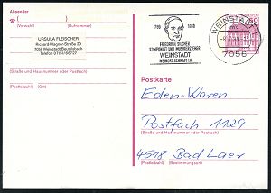 3929 | 8 € | POSTLEITRAUM 7000 (OHNE STUTTGART) : 7056 WEINSTADT 1/ md/ 1789 1860/ FRIEDRICH SILCHER/ KOMPONIST U.MUSIKERZIEHER.. 1989 (8.7.) Jubil.-MWSt (Kopfbild Silcher) klar gest. Bedarfs-Kt. | ![]() | |