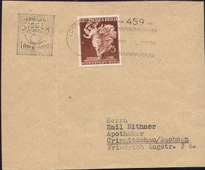 3834 | 45 € | POSTLEITRAUM 7000 (OHNE STUTTGART) : LORCH (WÜRTT)/ =459=/ HERMANN/ SIEGER.. 1941 (8.4.) Freimarkenstempel (= Frankier-Aotomat zur Vorausentwertung) auf EF 3 Pf. Wiener Messe = als VE bisher unbekannt! auf Inl.-Drs.-Vorderseite sehr seltene Vorausentwertungs-Frankatur! (Mi.768 EF) | ![]() | |