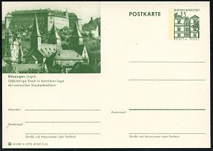 3931 | 12 € | POSTLEITRAUM 7000 (OHNE STUTTGART) : 7063 WELZHEIM/ c 1980 (13.3.) 1K-Segment auf ortsgl. BiP 50 Pf. Burgen, blaugrün: 7063 Welzheim..am früheren "Limes".. Wandergebiet (Ortsbild) seltene Kombination!! (Mi.P 129) | ![]() | |