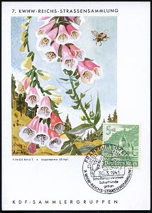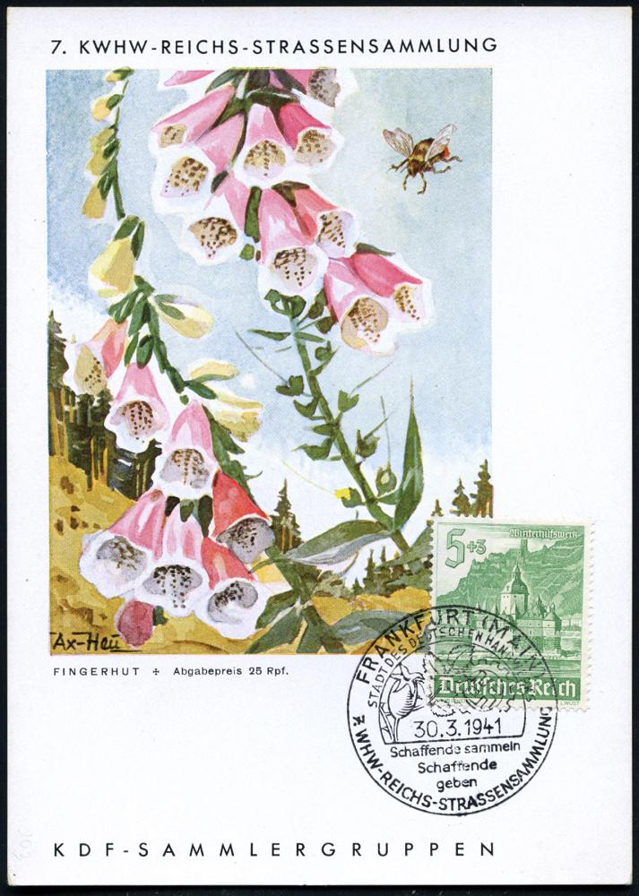 135 | 20 € | 6 Frankfurt/Main Sonder- und Handwerbestempel : FRANKFURT (MAIN)/ SDDH/ 7.WHW-REICHS-STRASSENSAMMLUNG 1941 (30.3.) SSt = Hagebutte klar a. WHW 3+2 Pf. vs. auf passendem WHW-Spenden-Gedenkblatt: Fingerhut (Bo.103) | ![]() | |
