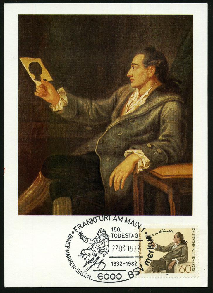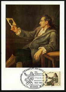 194 | 8 € | 6 Frankfurt/Main Sonder- und Handwerbestempel : 6000 FRANKFURT AM MAIN 1/ 150./ TODESTAG.. 1982 (22.3.) SSt = Goethe betrachtet Scherenschnitt (= Gemälde von G.M. Kraus) motivgl. EF 60 Pf. (Mi.1121) dekorative Maximumkt.! (Bo.835) | ![]() | |