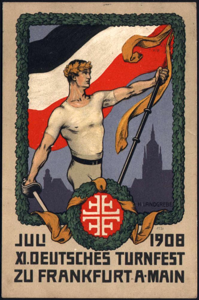 98 | 35 € | 6 Frankfurt/Main Sonder- und Handwerbestempel : FRANKFURT/ (MAIN)/ XI.DEUTSCHES/ TURNFEST/ *a 1908 (18.7.) SSt a. offiz. Color.-Sonder-Kt. No.2: XI. DEUTSCHES TURNFEST (Säbel-Fechter mit Flagge etc.) Bedarfs-Kt.! (kaum sichtbarer Riß) Bedarf ! (Bo.16 III = UB * a) | ![]() ![]() | |