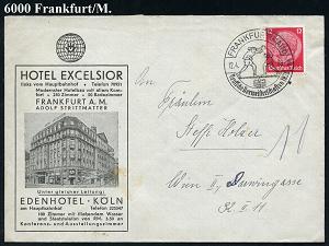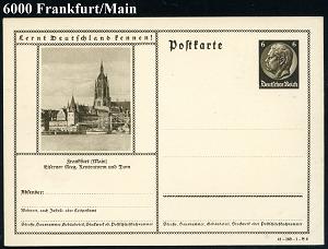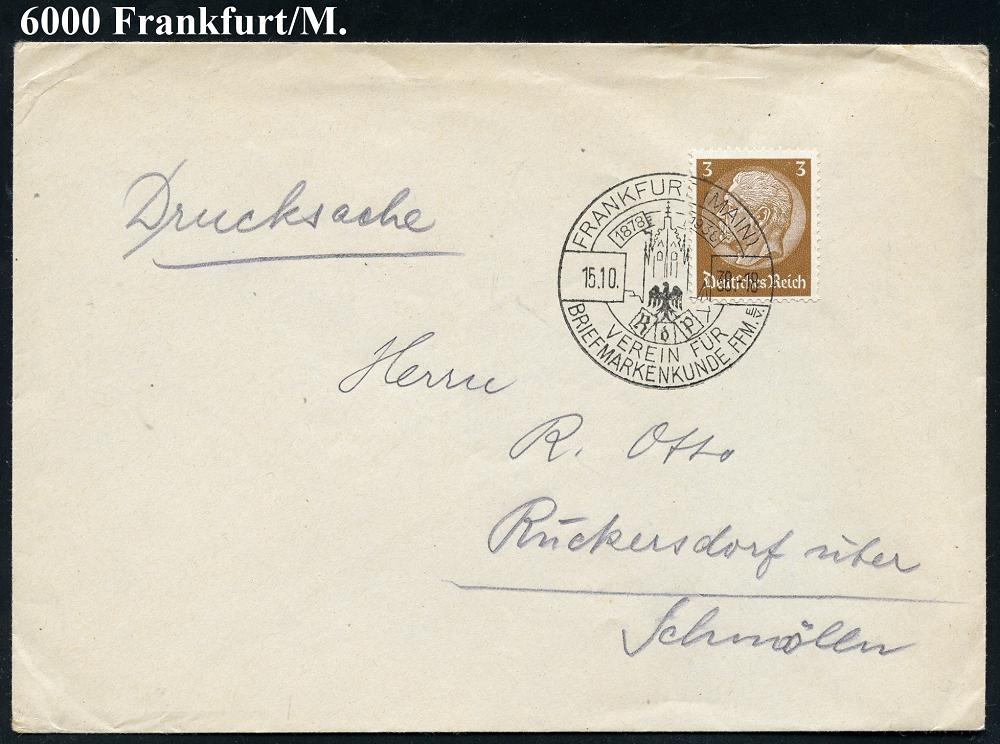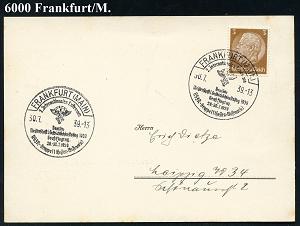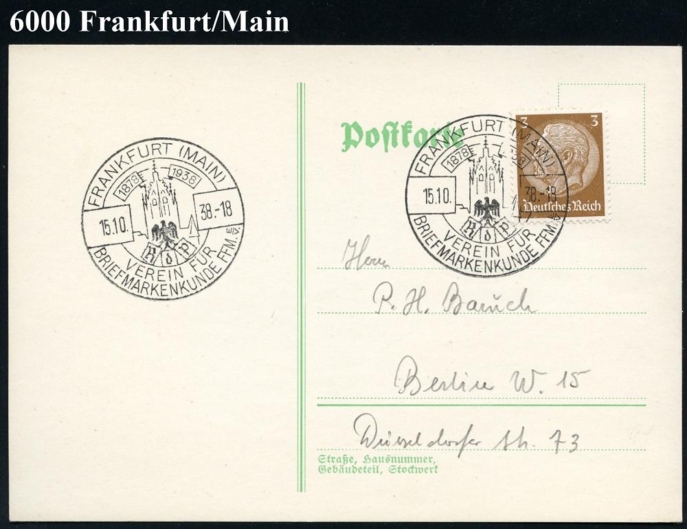 125 | 10 € | 6 Frankfurt/Main Sonder- und Handwerbestempel : FRANKFURT (MAIN)/ 1878 1938/ RdP/ VEREIN FÜR/ BRIEFMARKENKUNDE FFM E.V. 1938 (15.10.) SSt = Dom-Turm , klar gest. Inl.-Drs.-Karte (Bo.91) | ![]() | |