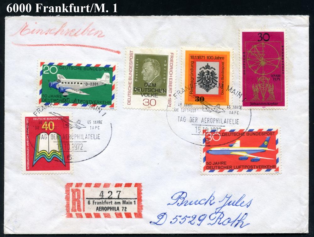 181 | 20 € | 6 Frankfurt/Main Sonder- und Handwerbestempel : 6 FRANKFURT AM MAIN 1/ TAG DER AEROPHILATELIE.. 1972 (15.10.) SSt = Concorde 2x + Sonder-RZ: 6 Frankfurt am Main 1/AEROPHILA 72 (Nr.309) Inl.-R-Bf. (Bo.624) | ![]() | |