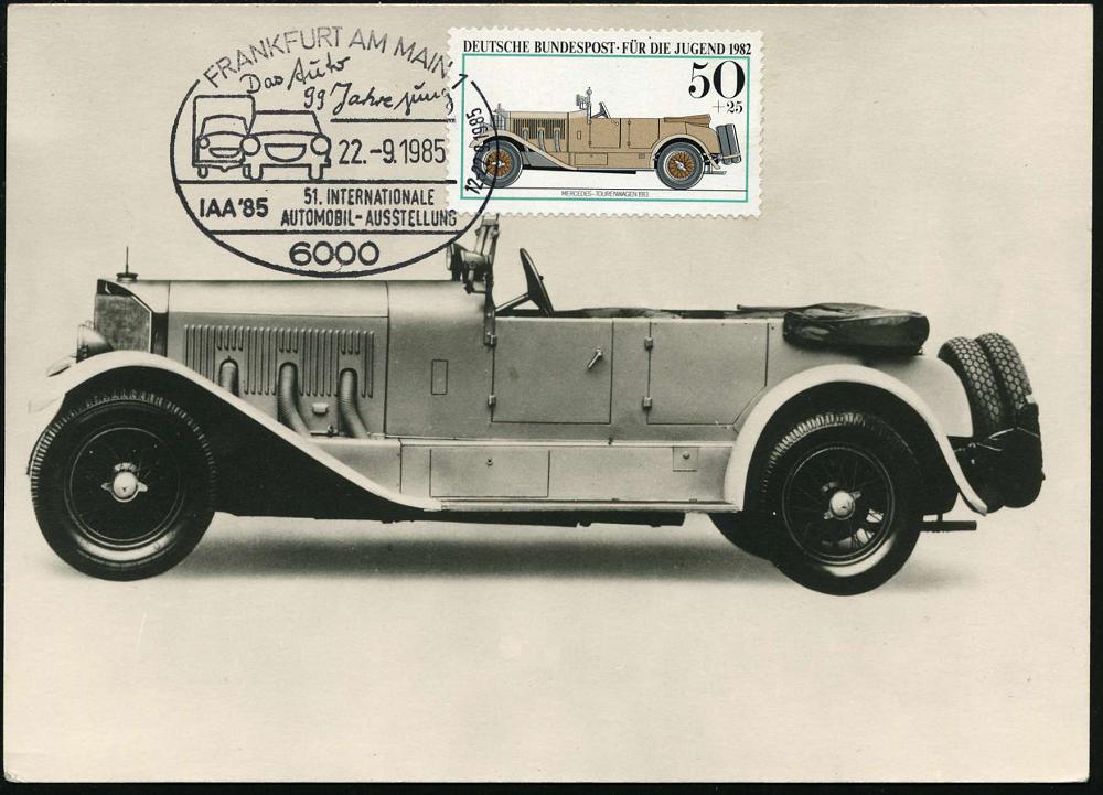 199 | 10 € | 6 Frankfurt/Main Sonder- und Handwerbestempel : 6000 FRANKFURT AM MAIN 1/ Das Auto/ 99 Jahre jung/ 51.INT./ AUTOMOBIL-AUSSTELLUNG 1985 (22.9.) SSt a. EF 50+25 Pf. Mercedes "Tourenwagen 1924" (Jahreszal auf der Marke 1913 = falsch!), Maximumkt. (Mi.1124 EF) | ![]() | |