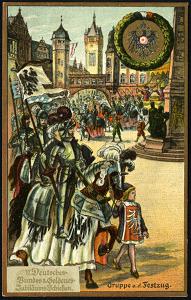 100 | 38 € | 6 Frankfurt/Main Sonder- und Handwerbestempel : FRANKFURT/ (MAIN)/ 17.Deutsches Bundes-u./ Goldenes Jubiläums-/ Schießen/ *b 1912 (14.7.) seltener SSt auf passender Color-Gold-Ak.: 11. Deutsches Bundes.. Schießen = Ritter hinter dem Römer, klar gest. (oben minm. nicht voll) Bedarfs-Fern-Kt. n. Ulm (Bo.20 b) | ![]() ![]() | |