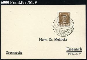 109 | 20 € | 6 Frankfurt/Main Sonder- und Handwerbestempel : FRANKFURT/ *(MAIN)9*/ INT.AUSST."MUSIK IM LEBEN DER VÖLKER" 1927 (18.7.) seltener SSt klar auf Inl.-Drs.-Karte (Bo.46) | ![]() | |