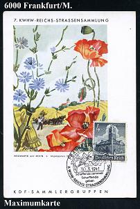 134 | 20 € | 6 Frankfurt/Main Sonder- und Handwerbestempel : FRANKFURT (MAIN)/ SDDH/ ..7.WHW-REICHS-STRASSENSAMMLUNG 1941 (30.3.) SSt = Huflattich klar auf WHW-Frankatur auf passender WHW-Spenden-Ak.: Huflattich (Bo.103) | ![]() | |