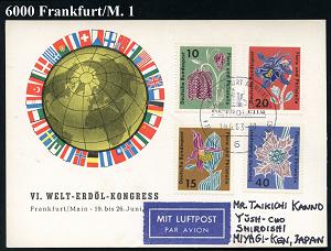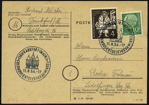 160 | 16 € | 6 Frankfurt/Main Sonder- und Handwerbestempel : 6 FRANKFURT AM MAIN 1/ 6th WORLD CONGRESS/ PETROLEUM 1963 (19.6.) SSt auf Color-Sonder-Kt.: VI. WELT-ERDÖL-KONGRESS, Übersee-Flp.-Kt. (Bo.334 , 1.Tag) | ![]() | |