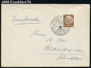 126 | 16 € | 6 Frankfurt/Main Sonder- und Handwerbestempel : FRANKFURT (MAIN)/ 1878 1938/ RdP/ VEREIN FÜR/ BRIEFMARKENKUNDE.. 1938 (Okt.) SSt = Turm des Domes , klar gest. Inl.-Bf. (Bo.91) | ![]() | |